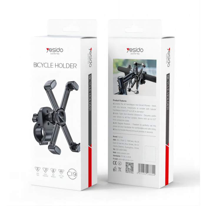 C191 Bicycle/Motocycle phone holder Yesido C191 Adjustable Phone Holder Stand Universal Motorcycle Bicycle Bike Handlebar Bracket Mount Clip GPS Phone Holder. HPS offer 0.5J/1J/2J/3.5J/4.8J(AC/AC&DC/SOLAR). Features ABS+Metal+PC. 4 Corner Holding mobile. for...