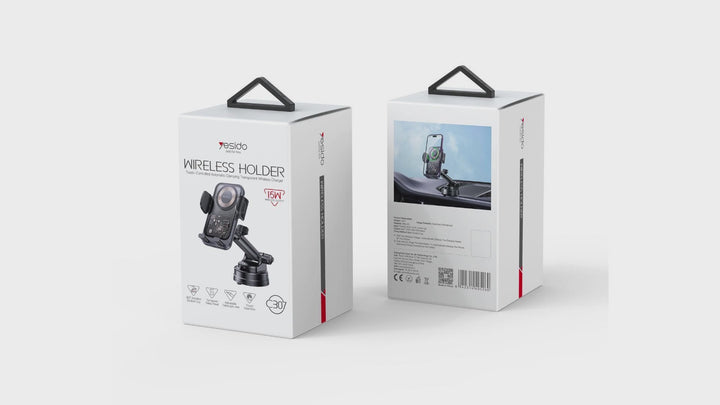 C307 360 Rotation Electric Locking 15W Wireless Fast Charging Transparent Car Phone Holder C307 15W Wireless Charging Phone Holder C307 Yesido 360 Rotation Electric Locking 15W Wireless Fast Charging Transparent Car Phone Holder. Features Material: PC+ABS+Tempered glass. 15W Max Wireless Charging. 360 degree rotating base. Telescopic Clamp Arm. Electronic extending clamp arm.