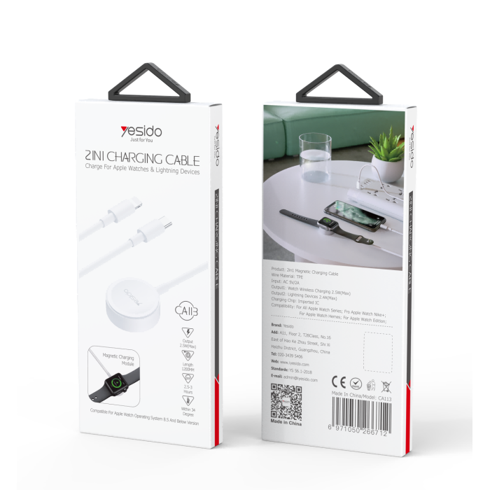 CA113 2 in 1 TC To Watch&IP Data Cable Type C to 2 in 1 Magnetic Wireless Charger for Mobile Phone and Watch. Support protocol of QC, PD, PPS, SCP, SVP,...