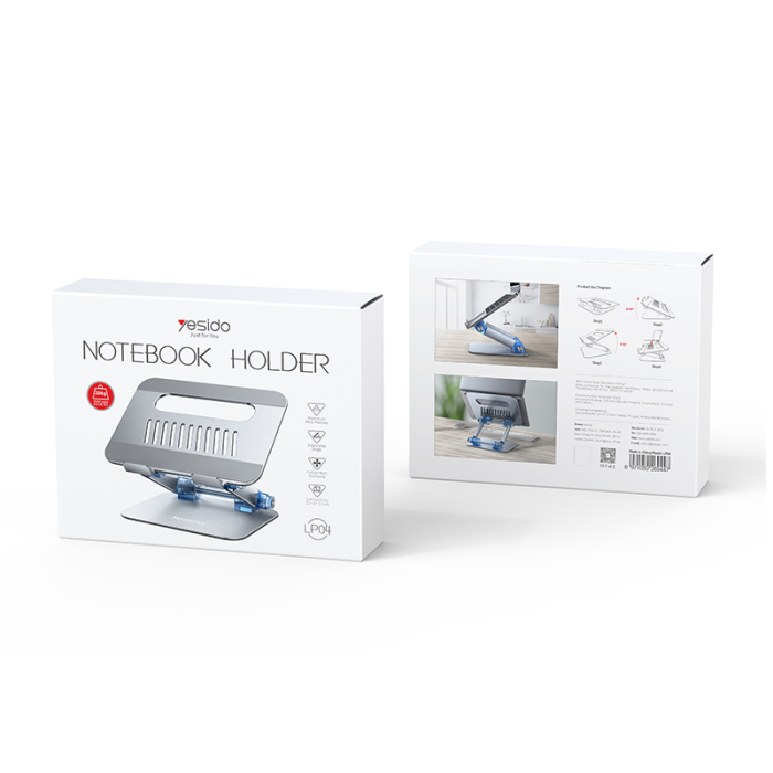 LP04 Aluminum Alloy Laptop Holder New Technique Compound Aluminum Alloy Folding Design Multi Angle Laptop Stand Features Two Stage Folding. Good Heat releasing Aluminum Alloy Material universal for all laptop