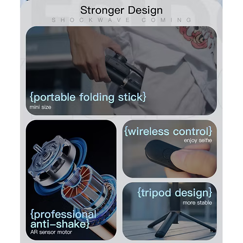 SF14 Bluetooth Selfie Stick | Tripod Zoom Handheld Gimbal Foldable Stabilizer Selfie Stick BT5.0. Battery: 450mAh. Max Telescopic:19~75CM. Folding Trible Leg. 360° rotating Gimbal. Remote control.