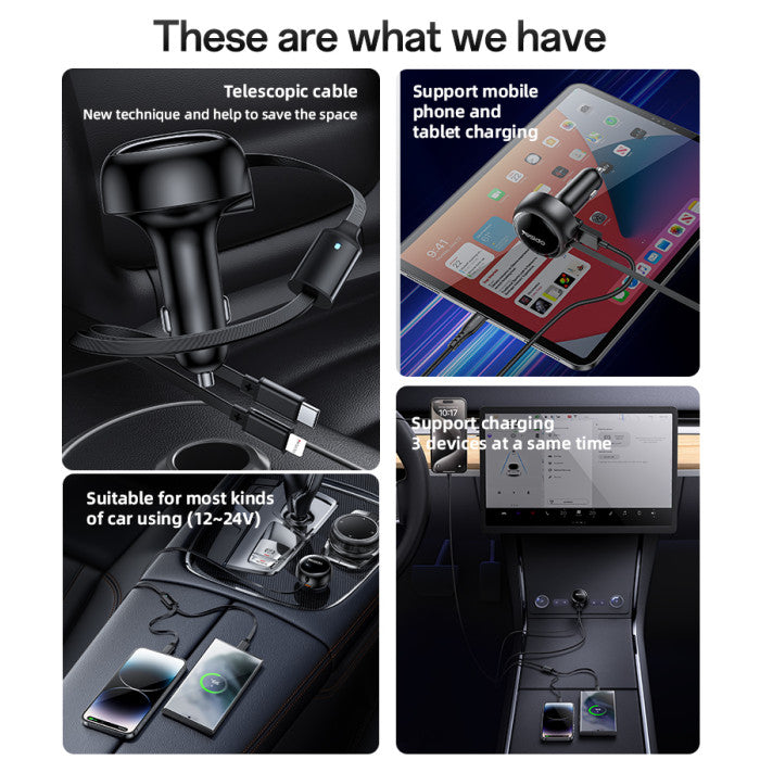 Y61 53W Fast Charging Support Multi Charging Type-C & IP Telescopic Cable Car Charger