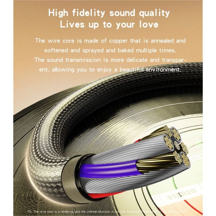YAU43 Aluminum Alloy Built-in High-performance 3.5MM AUX HD Call Audio Cable.