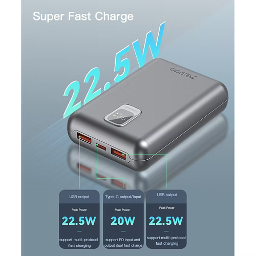 YESIDO YP47 20000mAh Power Bank YP47 20000mah 22.5W PD 20W Fast Charge LED Digital Display Power Bank. USB-A + Type-C Charging total Max 22.5W support 3 devices charging Features Our...