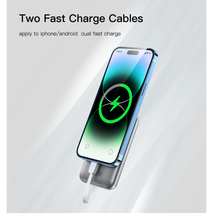 YP48 10000mah 22.5W PD20W Type-C Apple Interface Two Fast Charge Cables LED Display Power Bank
